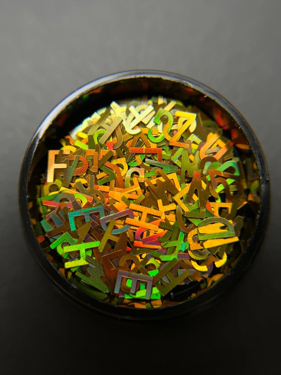 Голографические переливы, люкс-качество, каждая буковка идеально вырезана и переливается всем спектром цветов.