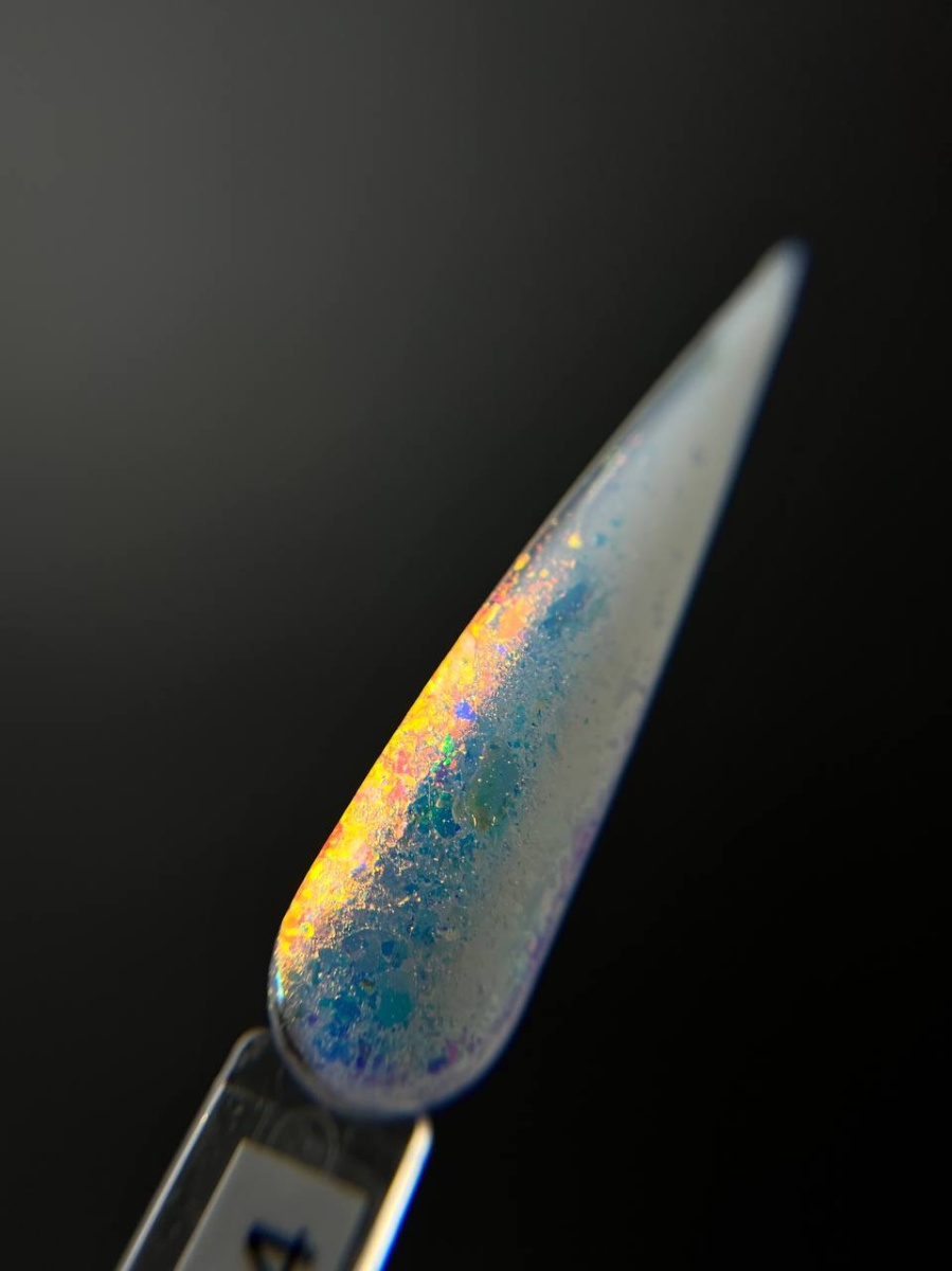 Цветные хлопья можно добавить в гель лак или топ, либо смешать с базой. Отлично смотрятся на натуральных и наращенных ногтях любой длины