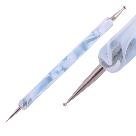 Дотс с двойными наконечниками разного диаметра - станет незаменимым помощником для создания всевозможных рисунков на ногтях. При помощи дотса легко создавать разнообразные завитушки, лепестки цветов, точечные узоры, при его помощи очень легко выкладывать улыбку для разнообразных видов френча. Им очень легко работать по не застывшему материалу, такому как акрил или 3D паста.