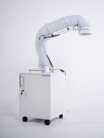 Напольная вытяжка-пылесос с дополнительной подсветкой для рабочего места мастеров ногтевого сервиса и подологов. Устройство состоит из вентилятора, обеспечивающего воздушный поток направленного действия и фильтра, задерживающего маникюрную пыль и мелкодисперсные фракции. Конструкция предусматривает замену фильтров по истечению срока выработки (через 1-6 месяцев в зависимости от интенсивности применения). Кронштейн и гибкая гофратруба позволяют установить прибор непосредственно над источником пыли. В корпус вмонтированы небольшие колесики, позволяющие передвигать прибор относительно кресла клиента или маникюрного стола.