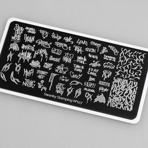 Уже полюбившиеся многим мастерам дизайны в стиле street art и изображениями с подтеками, тегами и граффити украсили пластину №127, разработанную по задумке стильной и талантливой @ver.nails.