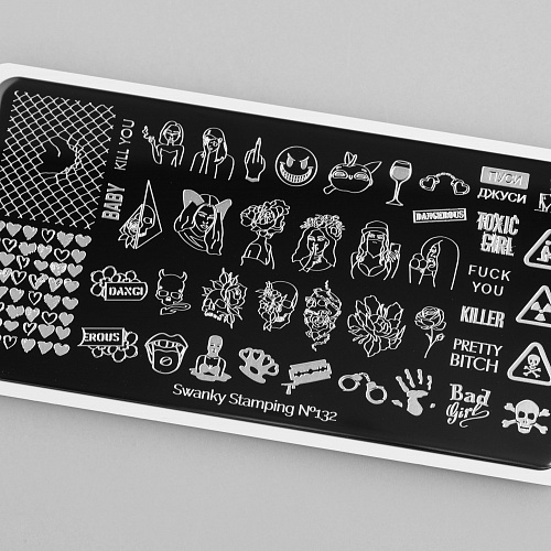 По многочисленным просьбам мастеров мы совместно с By Milky♡Nails @Valeria_nail_stylist подготовили пластину для девушек с дерзинкой. Пластина – вызов, для смелых, заявляющих о себе девушках. Популярный паттерн сетка, надписи изображения девушек, черепа в цветах все арты прекрасно сочетаются между собой создавая каждый раз уникальную композицию на ногтях.