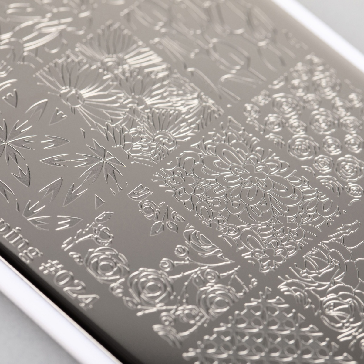 - Пластины для стемпинга Swanky Stamping имеют высокое качество гравировки. При ближайшем рассмотрении видно как глубоко и четко прорисована каждая деталь. Это вам позволит перенести даже самые тонкие линии.