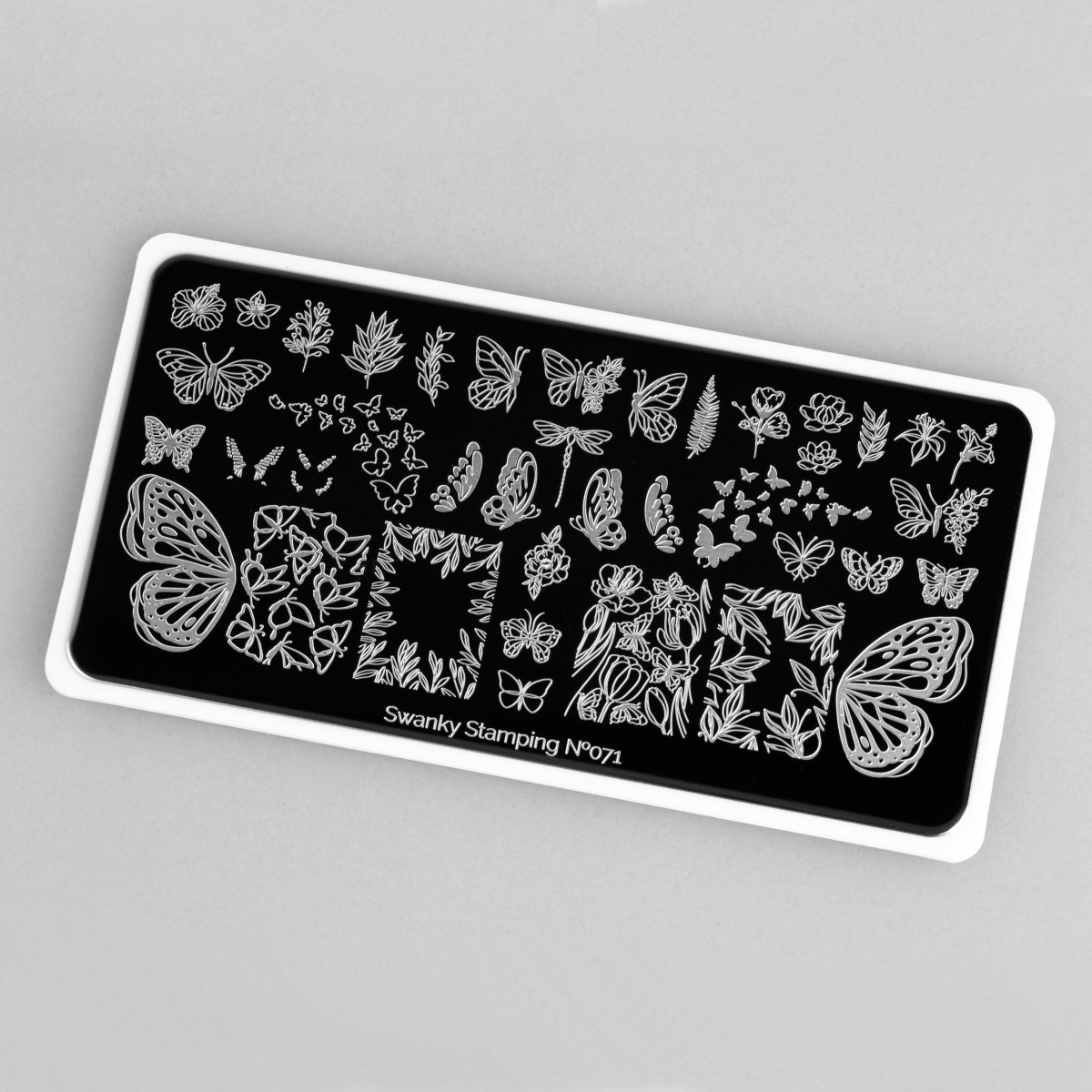 - Пластины для стемпинга Swanky Stamping имеют высокое качество гравировки. При ближайшем рассмотрении видно как глубоко и четко прорисована каждая деталь. Это вам позволит перенести даже самые тонкие линии.