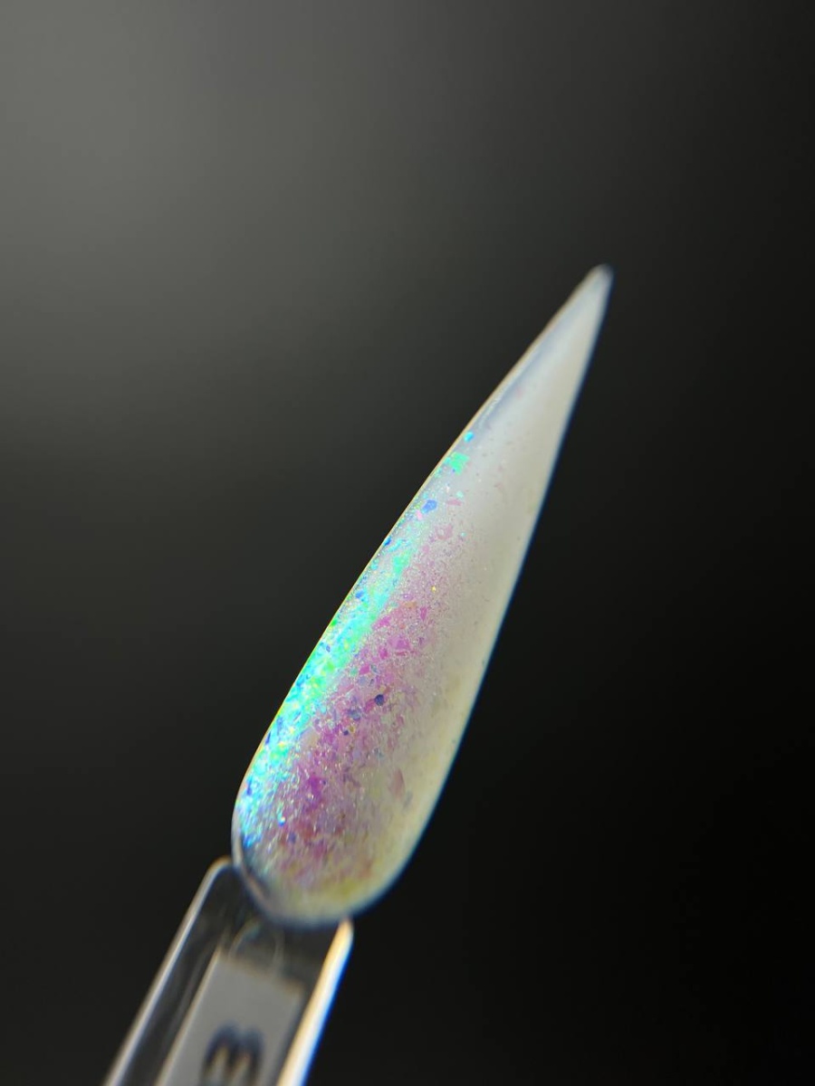 Цветные хлопья можно добавить в гель лак или топ, либо смешать с базой. Отлично смотрятся на натуральных и наращенных ногтях любой длины