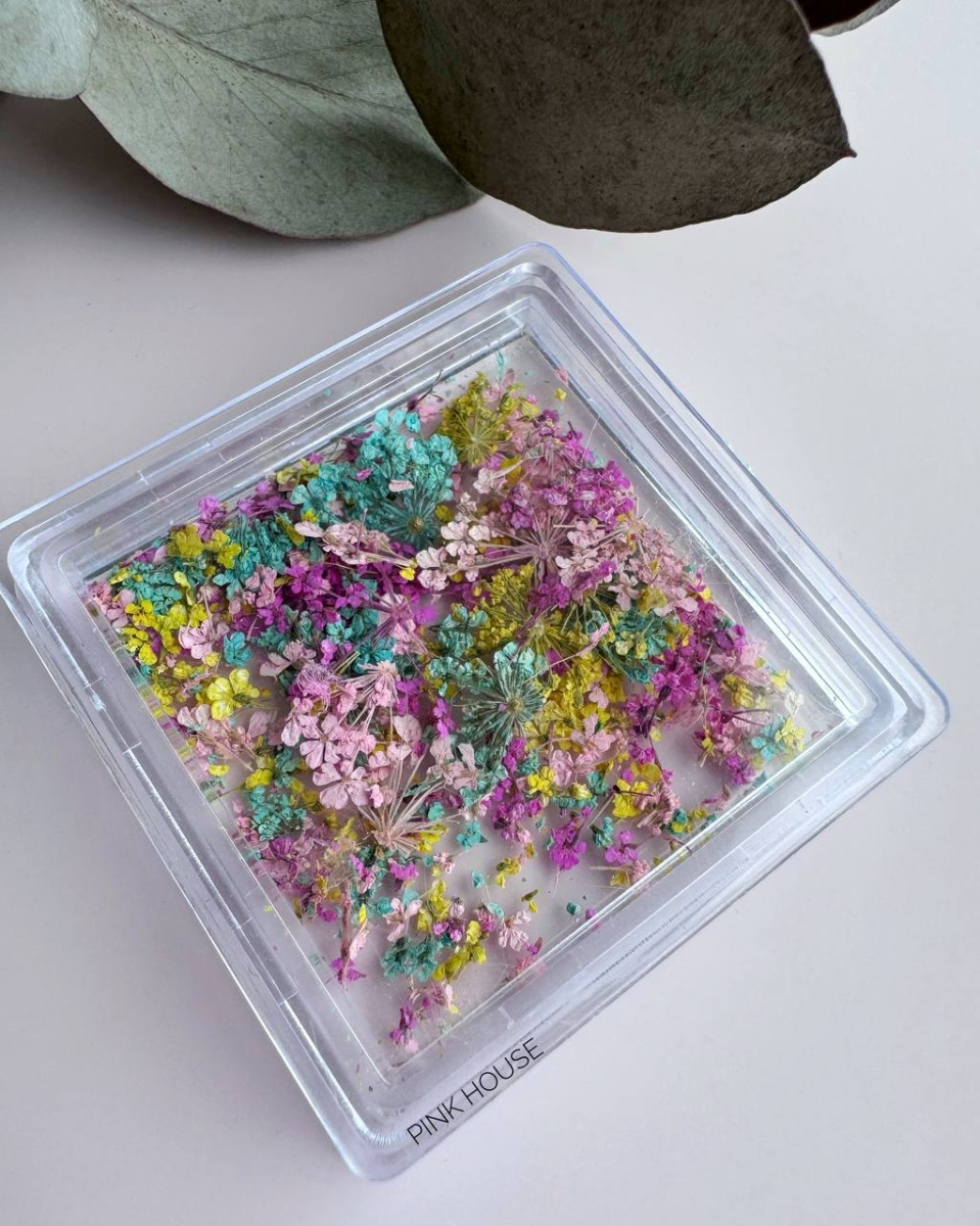 -Замешиваем в прозрачный или витражный материал, чтобы создать ногти в корейском стиле;