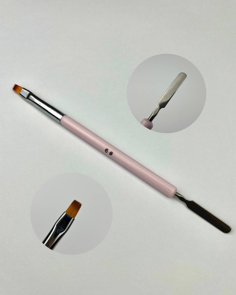 Кисть для полигеля "Прямая" №6 (розовая с шпателем)