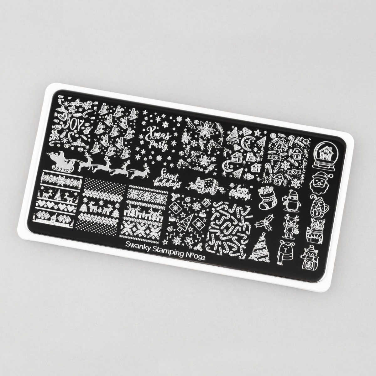 И животные, и украшения, и елочки - все эти рисунки позволят вам создать праздничное настроение на ногтях клиента, а внести толику разнообразия вы сможете различными паттернами этой пластины.